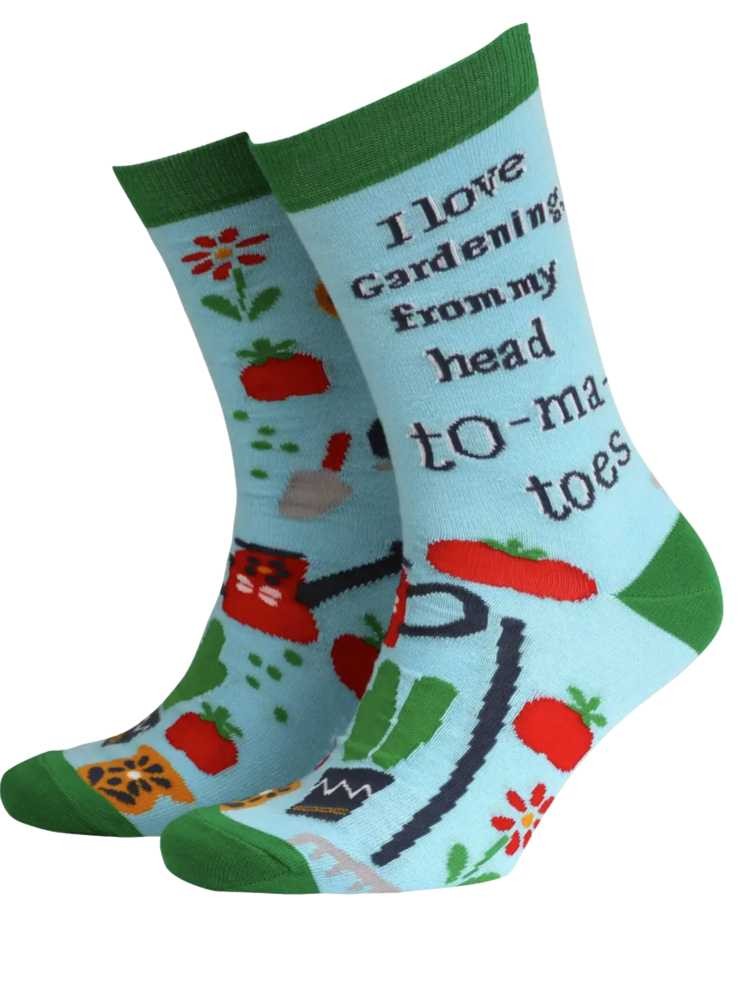 Bambus strømper i herrestr. "I love gardening". Herlige farverige og farvestrålende bambusstrømper af 75% bambus 24% polyamid og 1% elastan. Designet i England tilsat en masse humor og flotte farver, og produceret i Tyrkiet. Sock Therapy bambusstrømperne er designet af engelske Smiling Faces.